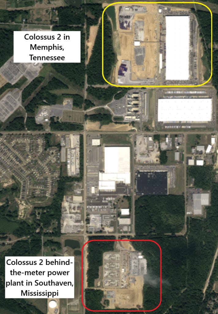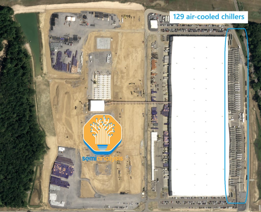 关于xAI的Colossus 1已有大量报道。孟菲斯建设的这个项目值得载入史册:122天内从零开始建成的最大AI训练集群。拥有约200,000台H100/H200和约30,000台GB200 NVL72,它至今仍是最大的完全运营的单体集群(除Google外,后者是多数据中心训练的大师)。